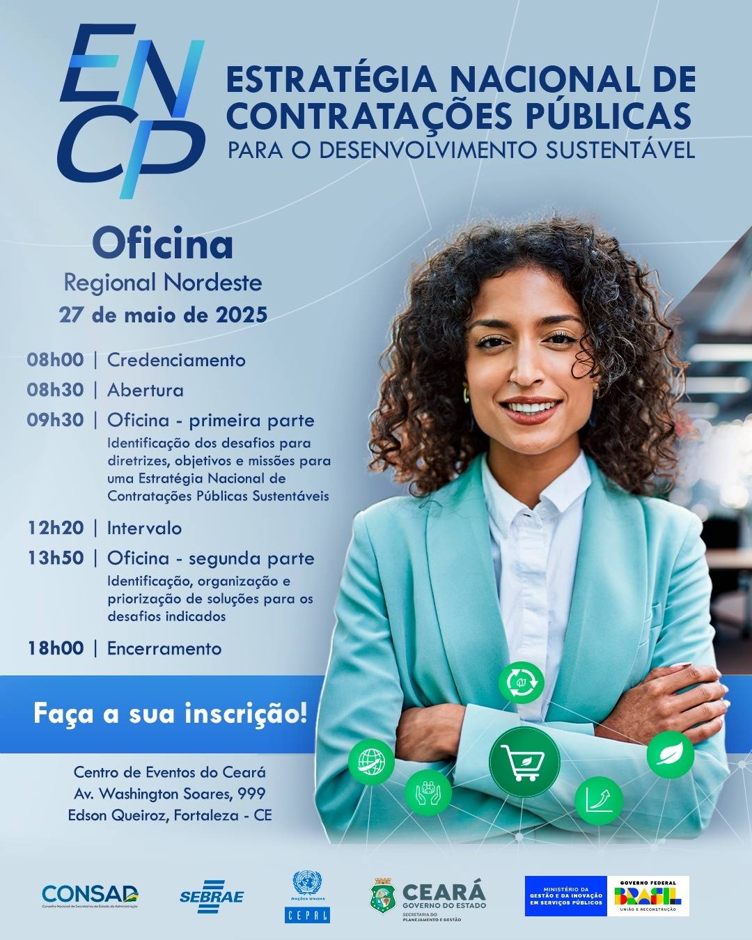 Os encontros serão realizados no Nordeste (com duas oficinas: Fortaleza/CE, dia 27/05 e Salvador/BA, no dia 29/05),